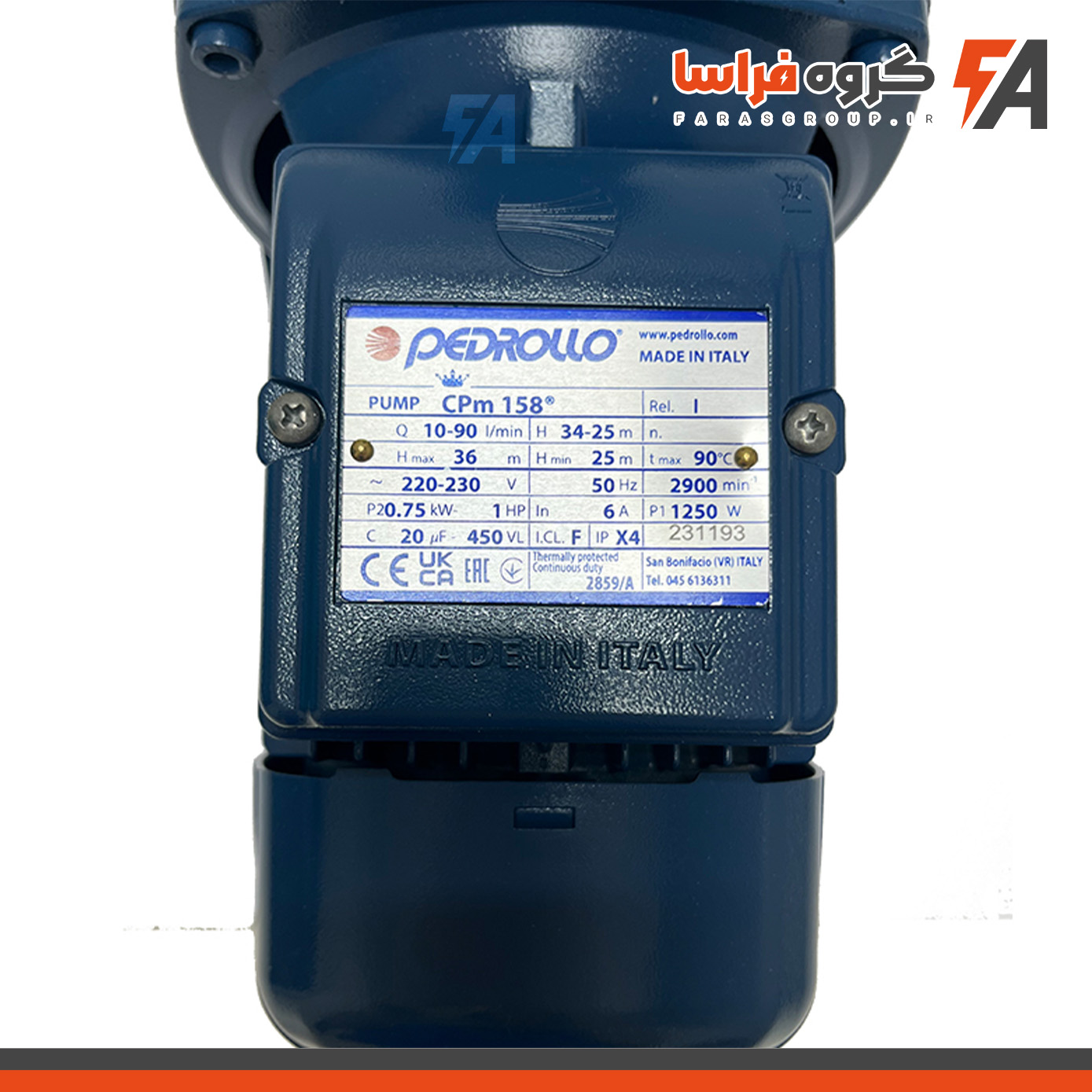 پمپ آب بشقابی 1 اسب پدرولو مدل CPm158 از تولیدات باکیفیت برند ایتالیایی Pedrollo است که برای پمپاژ آب تمیز و عاری از مواد شیمیایی طراحی شده و به دلیل عملکرد مطمئن و کاربری آسان، در طیف گستردهای از کاربردها مورد استفاده قرار میگیرد. این مدل گزینهای مناسب برای مصارف خانگی، پروژههای عمرانی، تأمین و توزیع آب از مخازن متوسط و کوچک و همچنین آبیاری باغ و فضای سبز محسوب میشود. با توجه به ساختار فنی دستگاه، توصیه میشود پمپ در محیطی سرپوشیده نصب شده و در برابر شرایط نامساعد جوی محافظت گردد تا طول عمر و بازدهی آن حفظ شود.