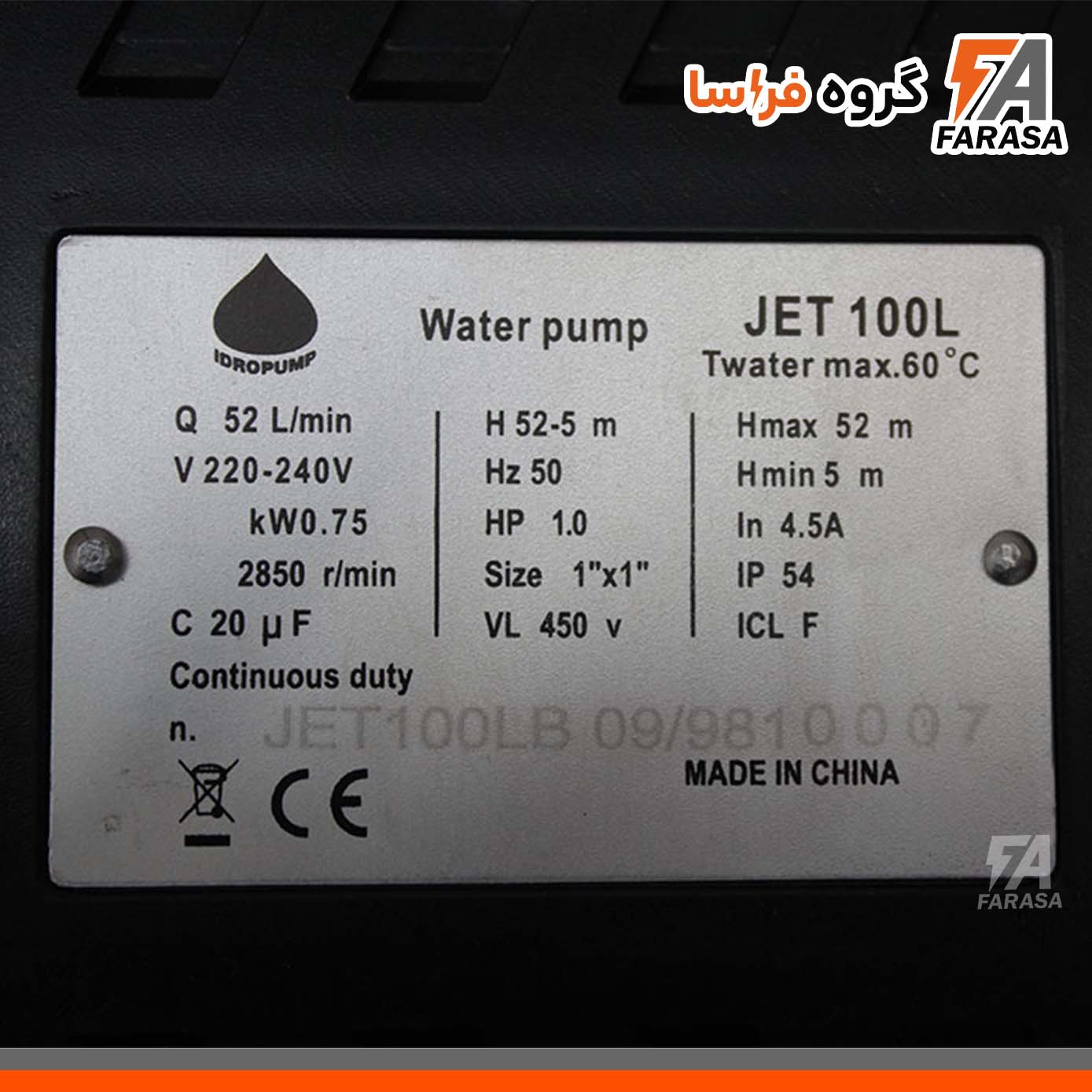پمپ آب خانگی یک اسب ایدرو مدل JET 100L