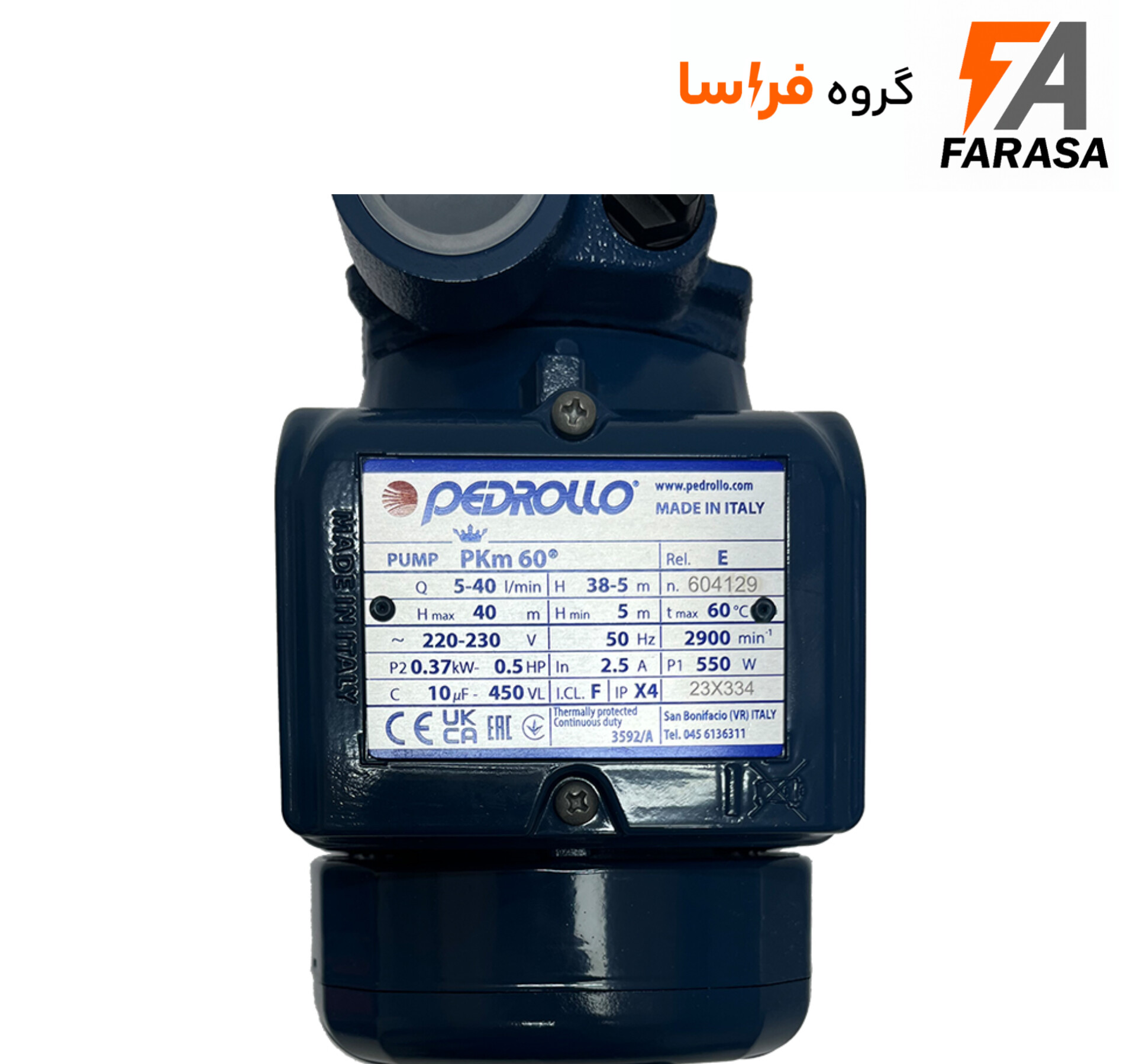 پمپ آب نیم اسب محیطی تک فاز پدرولو ایتالیا اصل مدل PKm60