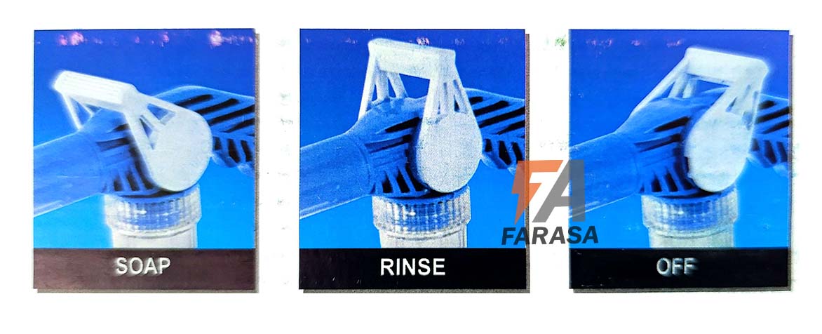 این کارواش مجهز به یک (محفظه داخلی) است که می‌توانید مواد شوینده را به‌سادگی در آن بریزید. با اتصال دستگاه به شیلنگ، آب شهری به صورت خودکار با محلول ترکیب شده و شست‌وشویی مؤثر ایجاد می‌کند. روی (ضامن دستگاه) سه حالت قابل انتخاب وجود دارد: